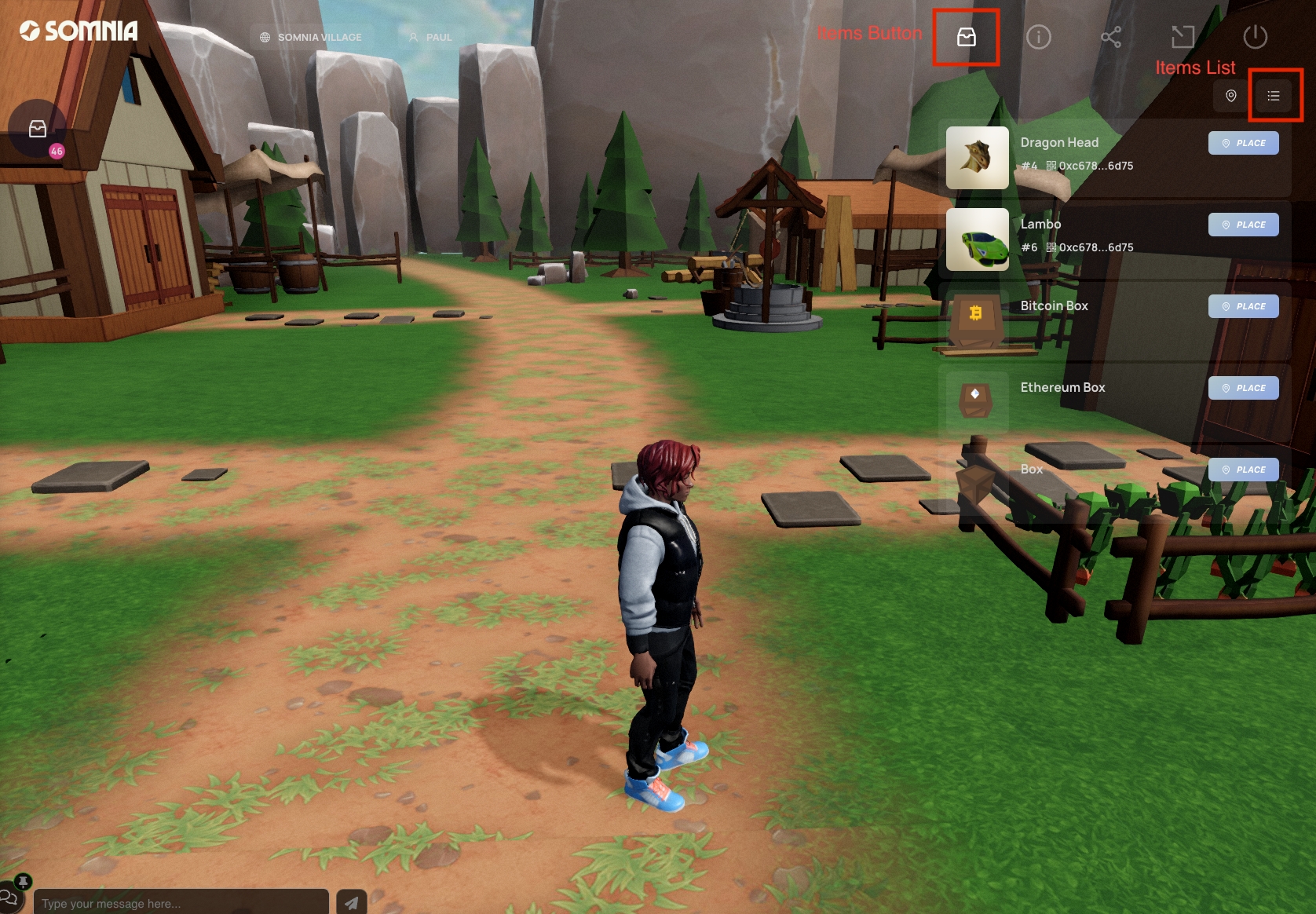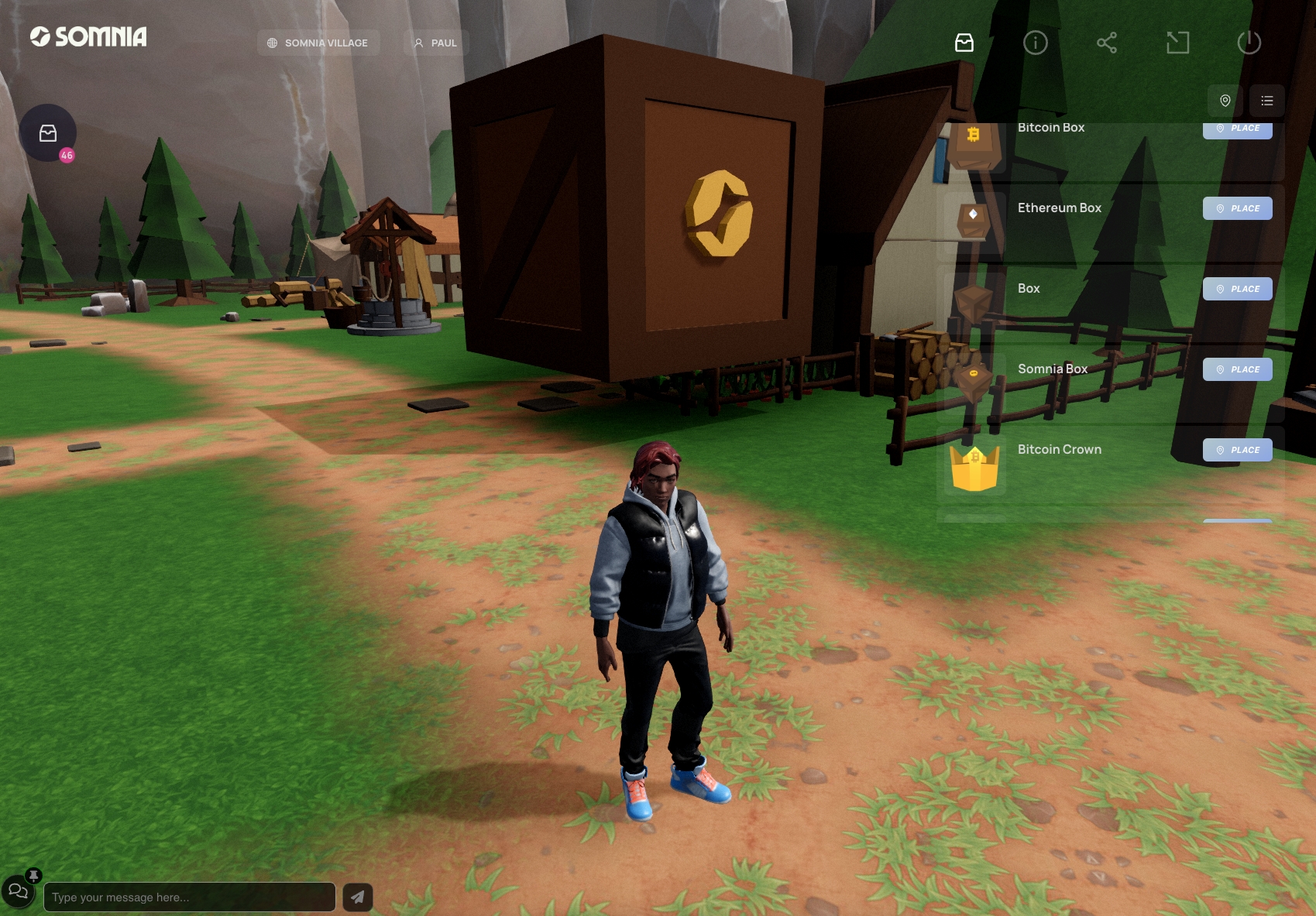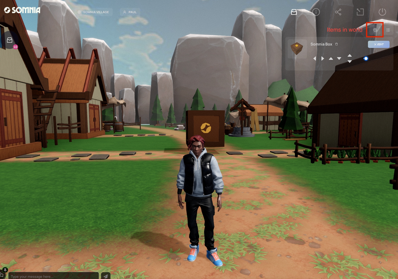 Here we have placed the Somnia box into the playground! You can edits it's size and position by going to the items in world list, selecting edit on the item which will allow you to move and resize it.